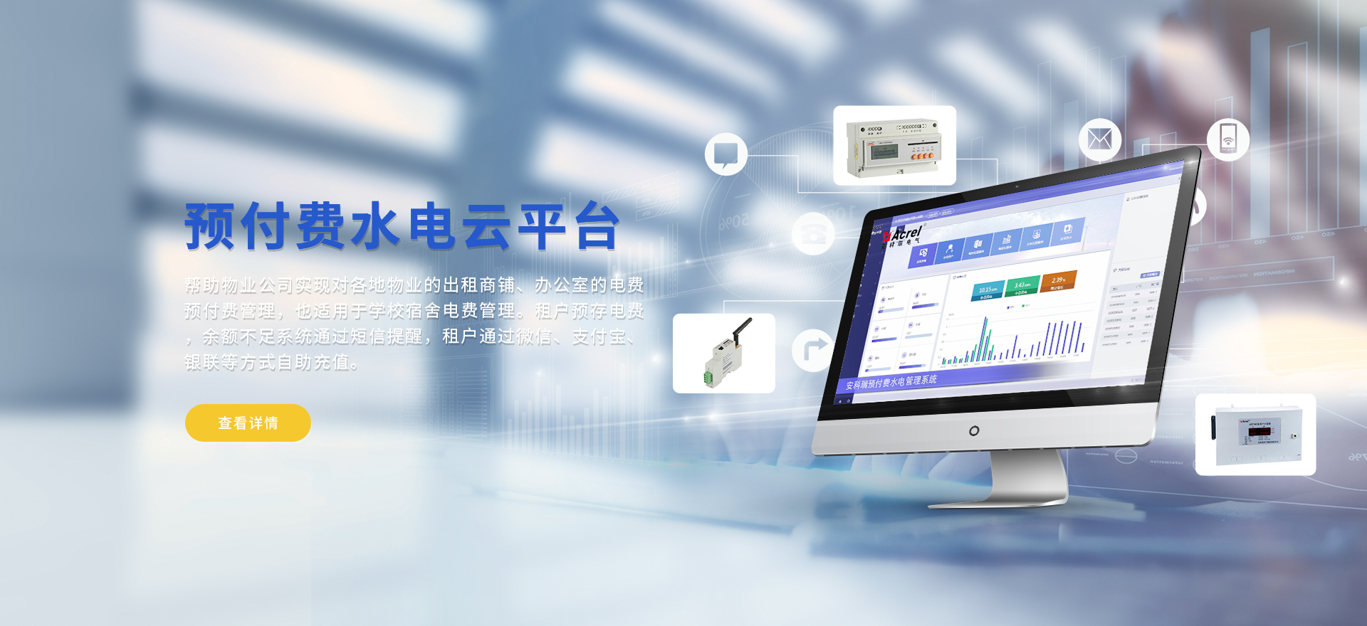 安科瑞提供的解決方案包括Acrel-EIoT能源物聯(lián)網云平臺、變電所運維云平臺、安全用電管理云平臺、環(huán)保用電監(jiān)管云平臺、智慧消防云平臺、能源管理云平臺、工業(yè)企業(yè)能源管控平臺、遠程預付費云平臺、餐飲油煙監(jiān)管云平臺、電動汽車/電瓶車充電樁收費管理云平臺、電力監(jiān)控/無線測溫系統(tǒng)、電能質量治理系統(tǒng)、電氣火災監(jiān)控系統(tǒng)、消防設備電源監(jiān)控系統(tǒng)、防火門監(jiān)控系統(tǒng)、應急照明和疏散指示系統(tǒng)、智能照明控制系統(tǒng)、醫(yī)用隔離電源絕緣監(jiān)測系統(tǒng)等,幫助用戶實現(xiàn)能源智能化、可視化、精細化管理,提高用能效率和用能安全,為企業(yè)節(jié)能降耗和實現(xiàn)能源數(shù)字化建設提供數(shù)據(jù)服務。